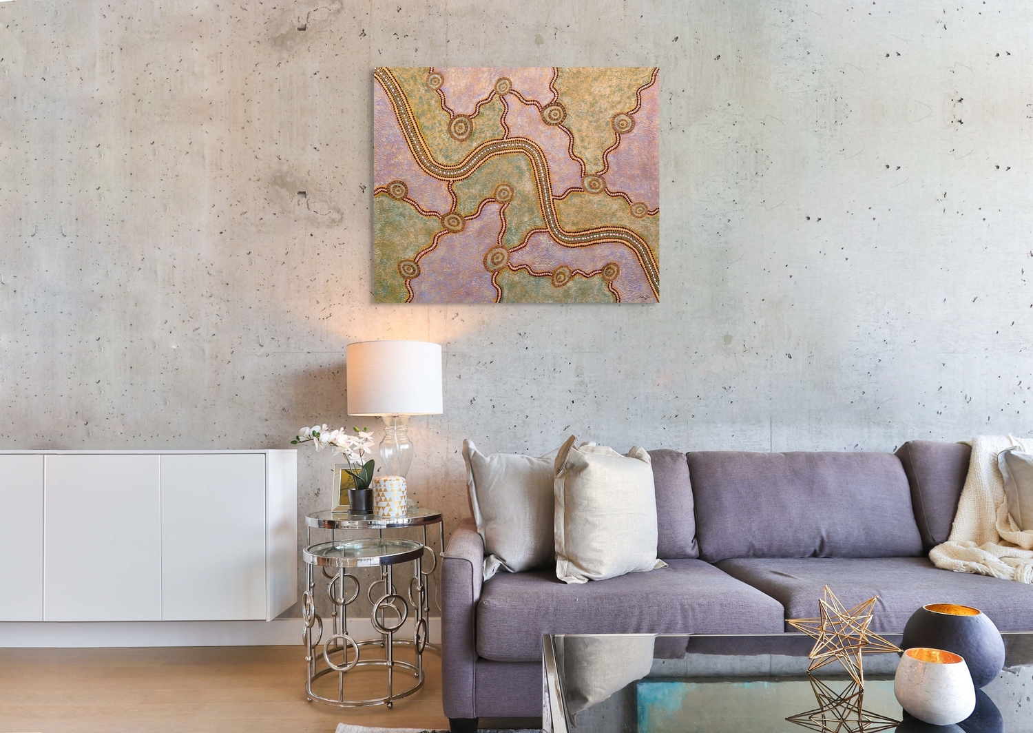 This painting is a celebration of the survival and resilience of Noongar People, their Land, their Culture and their Heritage and the NAIDOC theme for the year 2020, “ALWAYS WAS, ALWAYS WILL BE”. NAIDOC is a time to celebrate Aboriginal and Torres Strait People and their History.