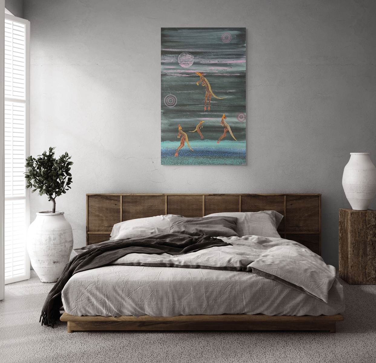A very, very long time ago Maant was watching a big group of yongas, they were all playing and jumping, maant noticed that there was one yonga that was bigger and stronger than the other yongas, he could jump the highest and hop the fastest. The big yonka was such a show off and bragger the other yonkas decided they would not camp or feed with the big yonga anymore. The yongas made a plan, they would go to the creek as soon as it got dark and swim down the creek staying on the same side, so when the big yonga saw their tracks he would think they had crossed the river. Their plan worked, the big yonga after searching for them for most of the night couldn’t find them so he went back to the camp all alone.