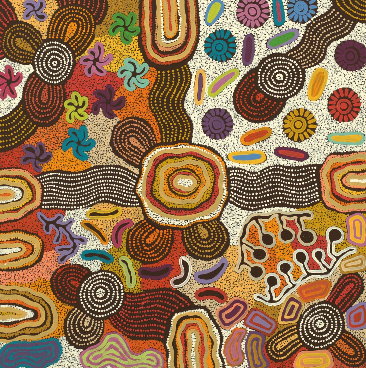 Nellie’s subjects are primarily Pulli (Rockholes), My Country, Women’s stories and Women’s Tingari. She has established herself amongst Central Desert artists, and her works have been widely exhibited throughout Australia and around the world. Nellie Marks Nakamarra was born in 1976 in the Kintore region located within the Northern Territory. She is the younger sister of the renowned Central Australian artist Elizabeth Marks Nakamarra.