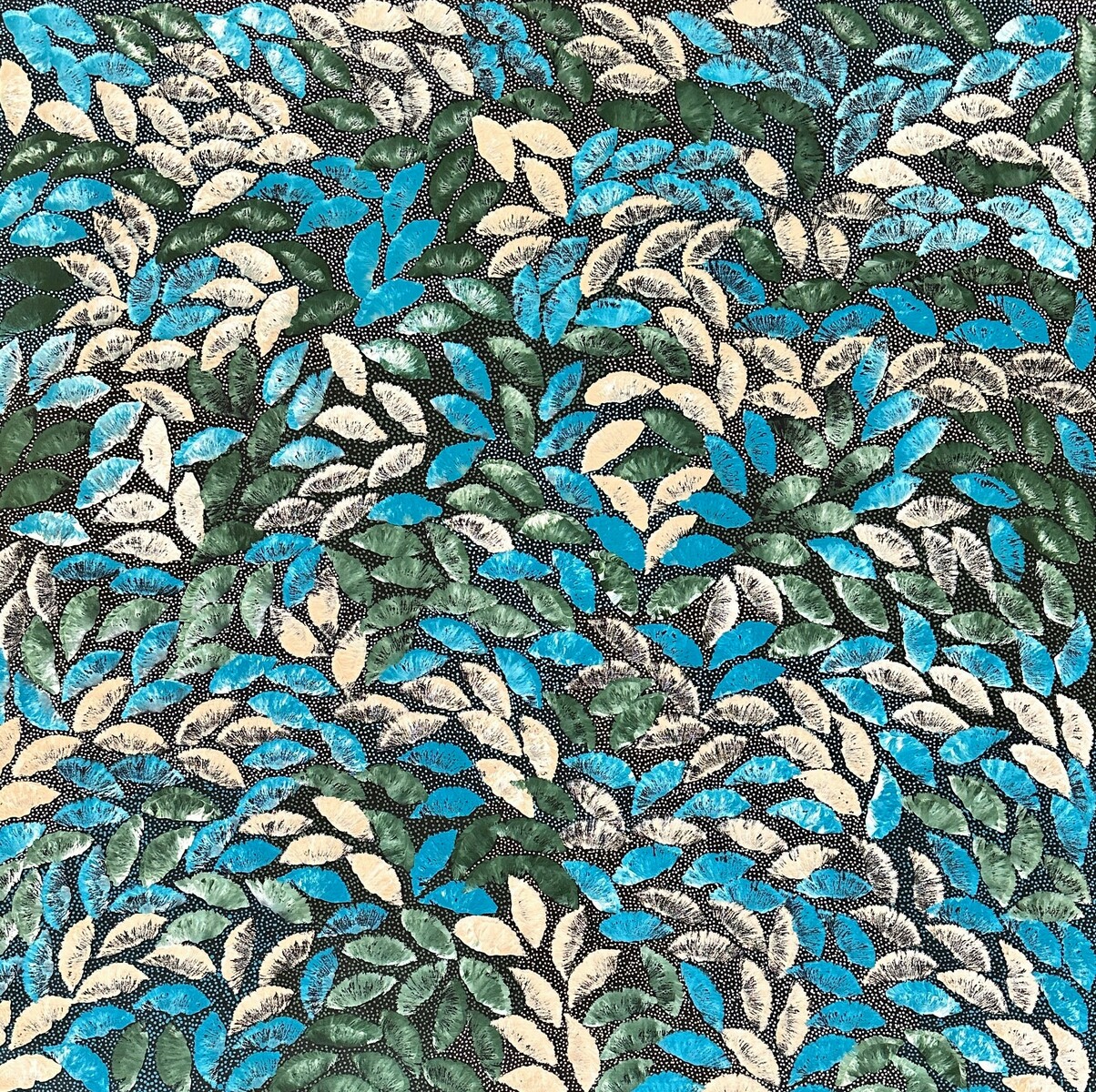 Selina has painted spinifex that she can find in her country, Antarrengeny in Utopia region. Spinifex, or aptly named the porcupine grass, is a sharp pointed grass that is abundant in central Australia.